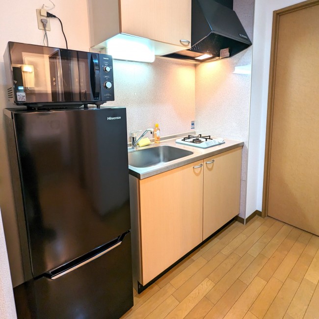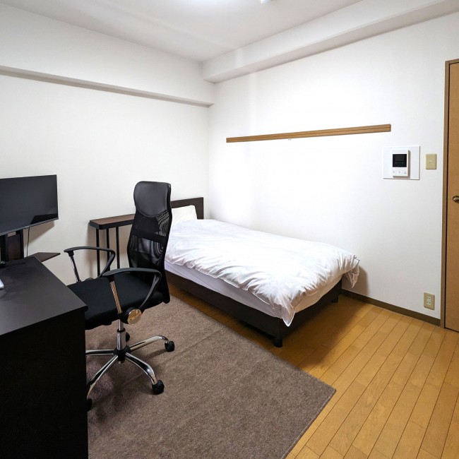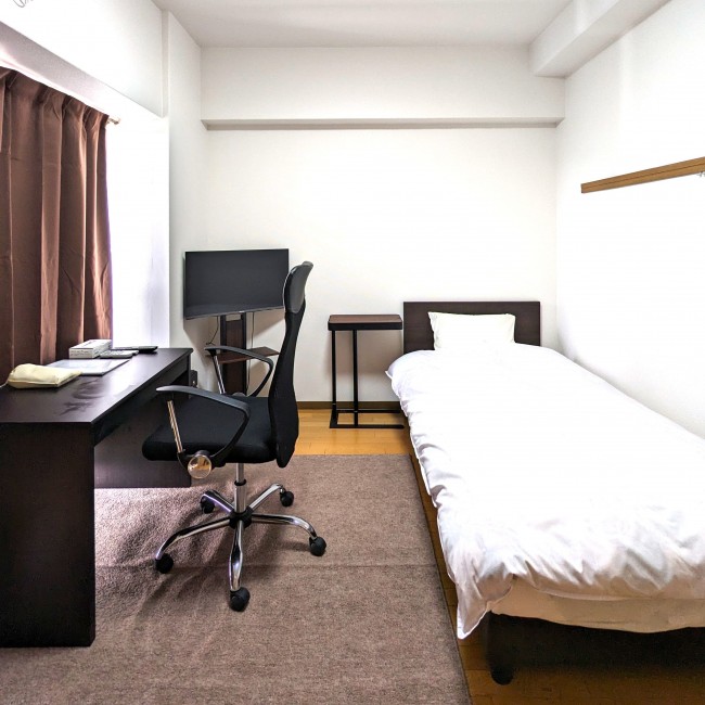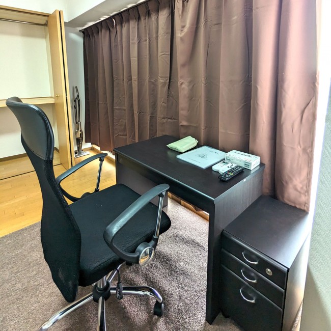 ・壁面一面の大容量のクローゼットがあるので、長期滞在で荷物が増えても余裕があって安心です。