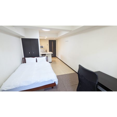 ・12.5帖のお部屋にダブルベッドを設置したオール電化のお部屋です。