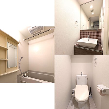 トイレットペーパー、シャワー、トイレ洗剤、トイレ用ブラシ、バスマット、バス洗剤、洗面所独立、脱衣所、風呂用スポンジ、浴室乾燥機