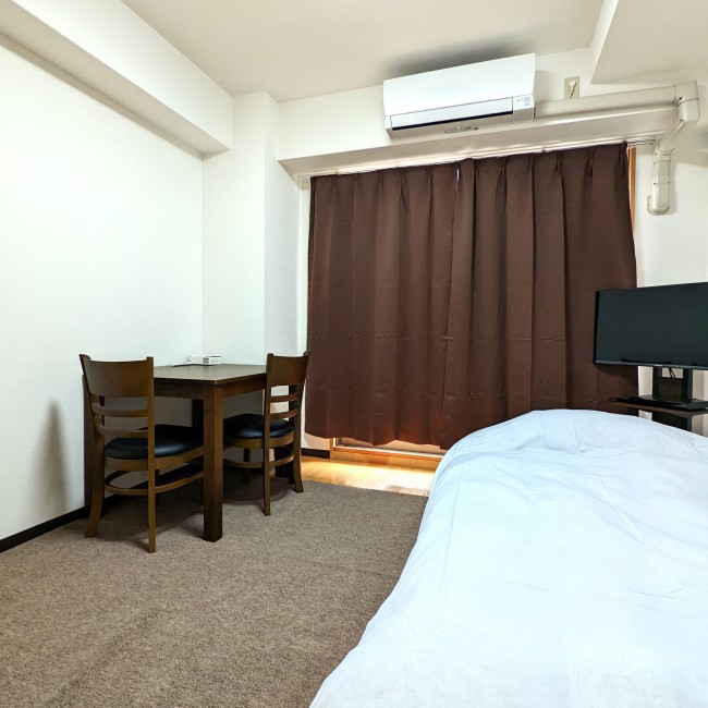 イス、カーテン付き、シーツ類、テーブル、テレビ台、ベッド、寝具一式