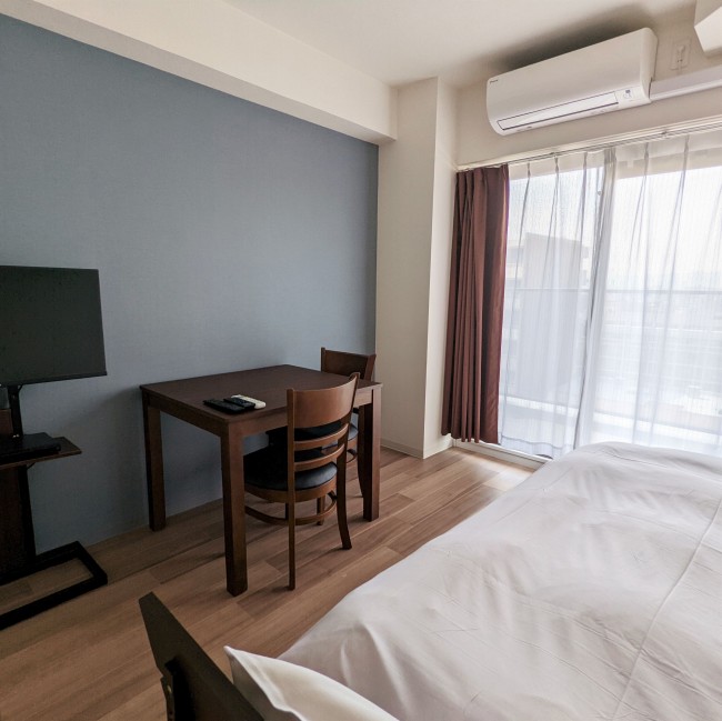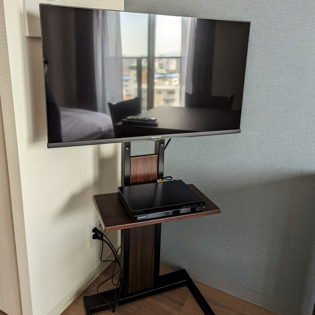 イス、カーテン付き、シーツ類、テーブル、テレビ台、ベッド、寝具一式