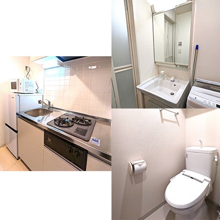 クローゼット、バス・トイレセパレート、フローリング、洗浄機能付き便座、洗濯機置き場(室内)、冷暖房完備、インターネット対応(ポケットWi-Fi)