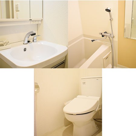 トイレットペーパー、シャワー、トイレ洗剤、トイレ用ブラシ、バスマット、バス洗剤、洗面所独立、脱衣所、風呂用スポンジ、浴室乾燥機