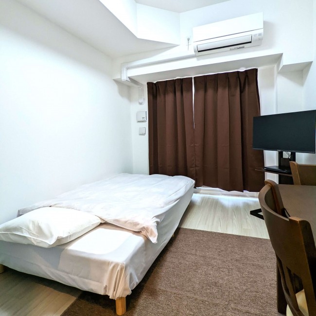 イス、カーテン付き、シーツ類、テーブル、テレビ台、ベッド、寝具一式