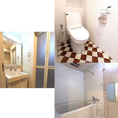 トイレットペーパー、シャワー、トイレ洗剤、トイレ用ブラシ、バスマット、バス洗剤、洗面所独立、脱衣所、風呂用スポンジ、浴室乾燥機