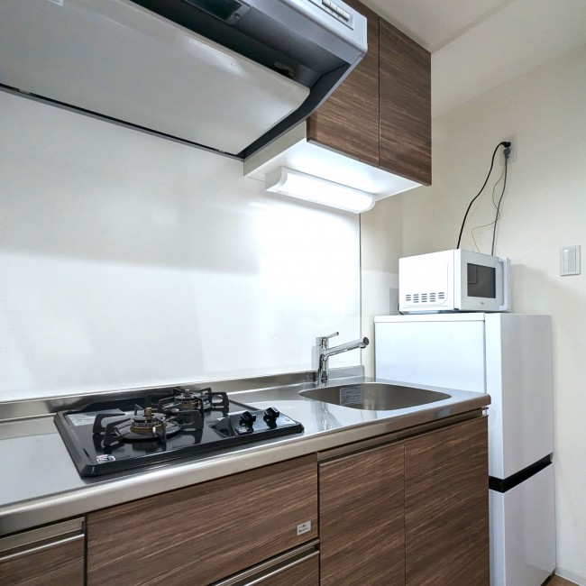 ・2口ガスコンロ、人感センサー付オートライト、温水洗浄便座、宅配ボックスと設備も充実。