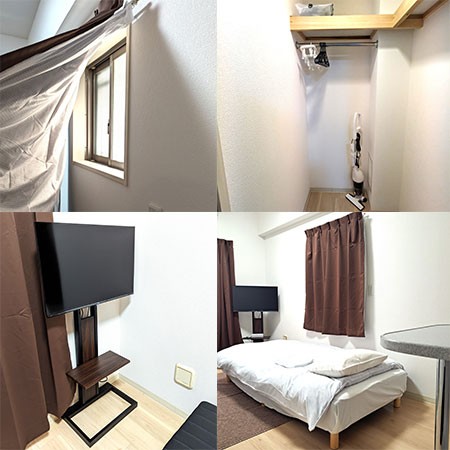 ・9.4帖の角部屋のお部屋にセミダブルベッドを設置しています。