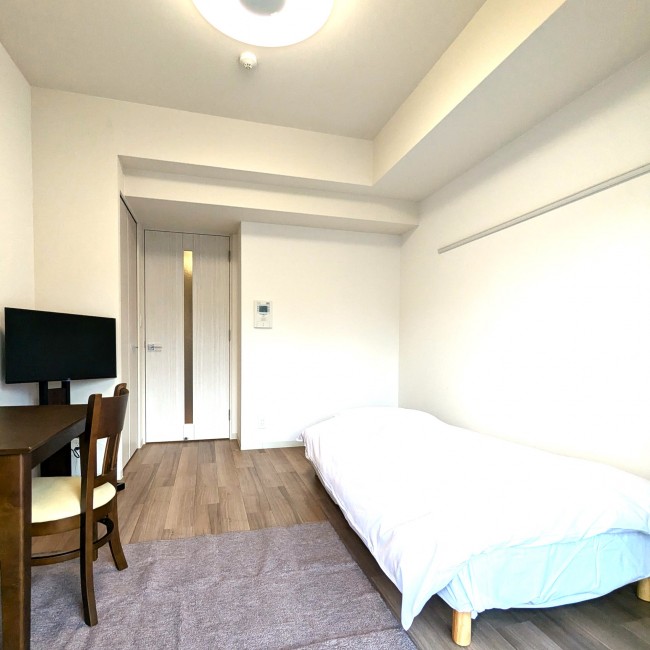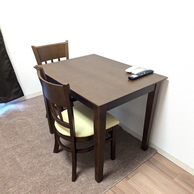 イス、カーテン付き、シーツ類、テーブル、テレビ台、ベッド、寝具一式