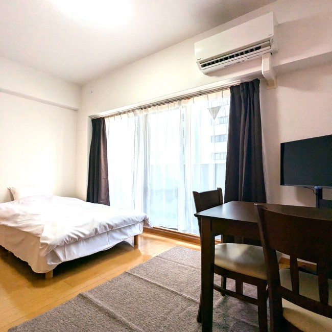 イス、カーテン付き、シーツ類、テーブル、テレビ台、ベッド、寝具一式