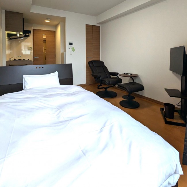 ・洋室8.7帖にセミダブルベッドをご用意しています。