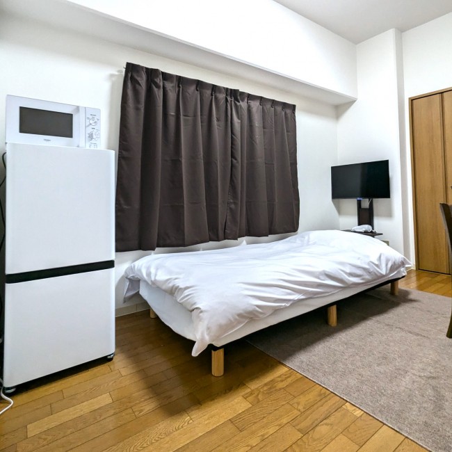 イス、カーテン付き、シーツ類、テーブル、テレビ台、ベッド、寝具一式