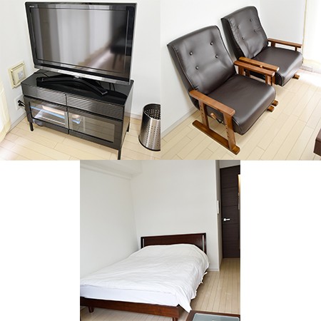 イス、カーテン付き、シーツ類、ソファー、テーブル、テレビ台、ベッド、寝具一式