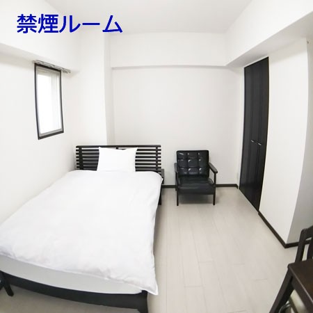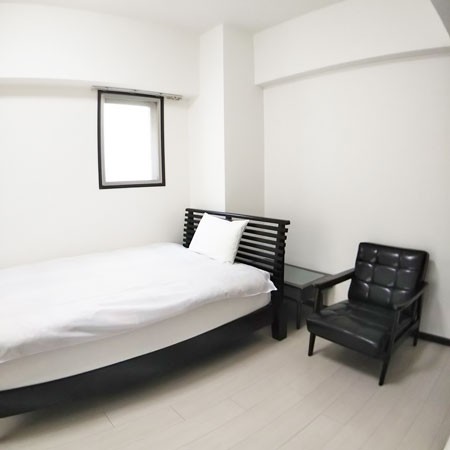 ・8帖のお部屋にセミダブルベッド、ソファ、ダイニングセット、ローテーブルをご用意しました。独立住戸です。